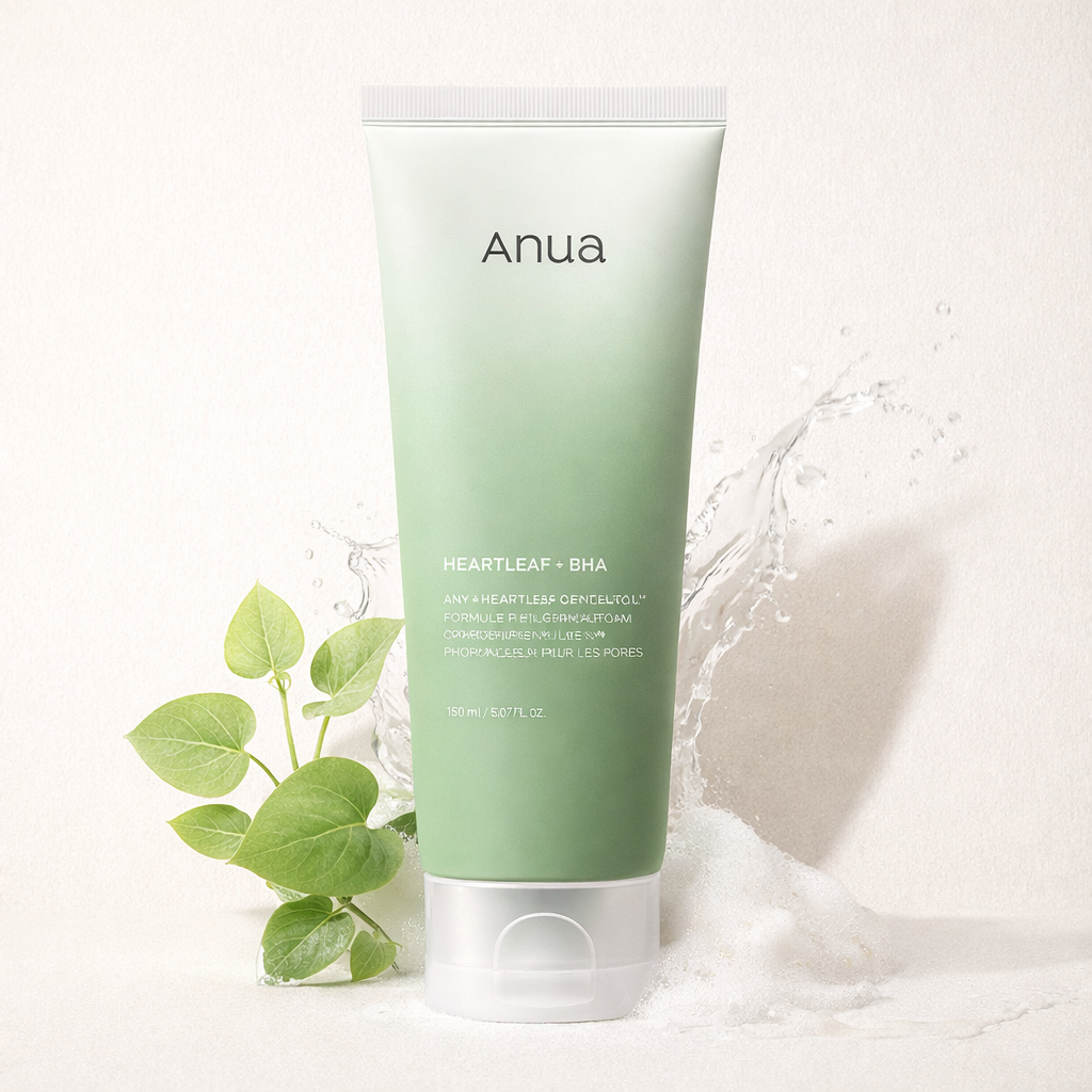 The Anua Heartleaf Cleanser combines mild BHA with heartleaf extract (Houttuynia Cordata) to remove impurities and excess sebum without disrupting the skin barrier.