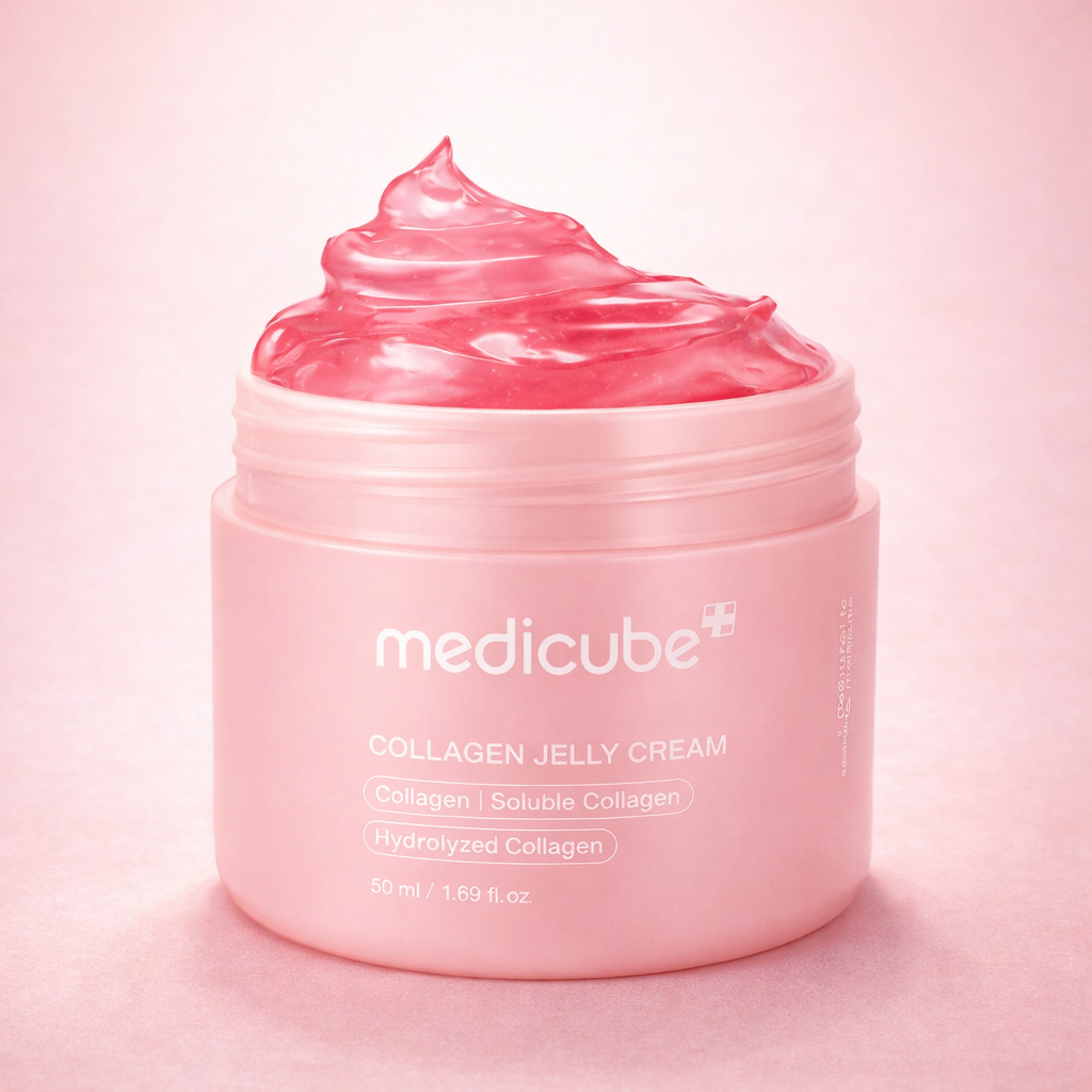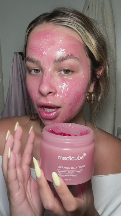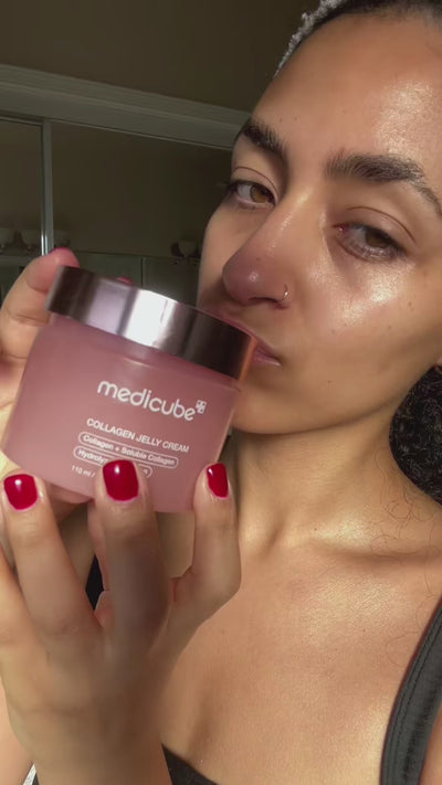 Medicube Collagen Jelly Cream is a fresh gel cream that absorbs quickly and leaves the skin feeling instantly comfortable. Hydrolyzed collagen supports elasticity and firmness, while niacinamide helps strengthen the skin barrier and promotes a calm, even glow. The lightweight texture does not leave a sticky feeling and is suitable for all skin types, including sensitive skin.